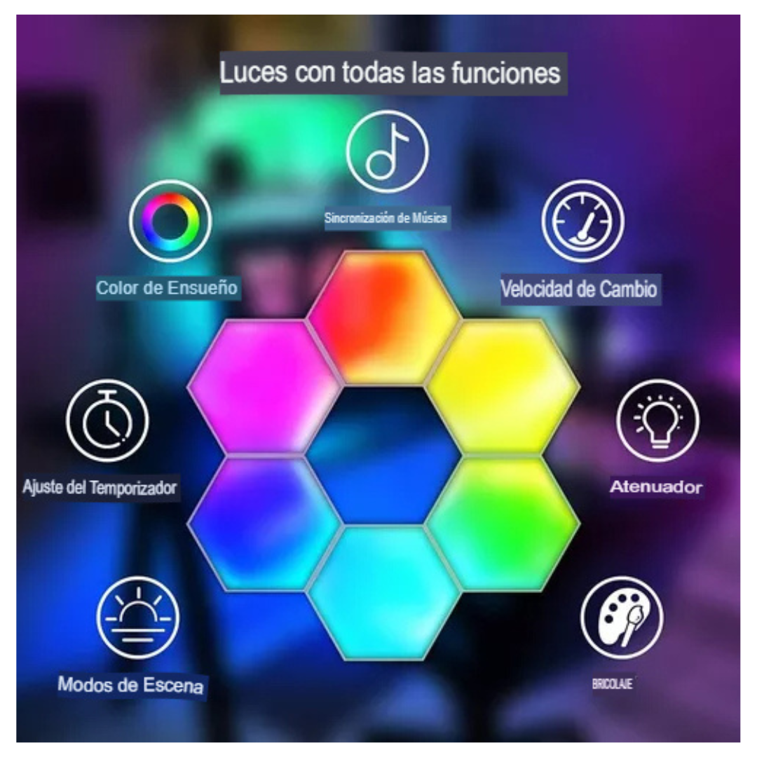 ¿Quieres transformar tu hogar en un espacio lleno de color y vida? Nuestras Luces Hexagonales Modulares 5 Modos LED te ofrecen infinitas posibilidades para crear ambientes únicos. Con 17 ajustes de color con 5 modos de iluminación, podrás adaptar la atmósfera a cualquier ocasión. ¡Deja volar tu imaginación para crear espacios que te inspiren!